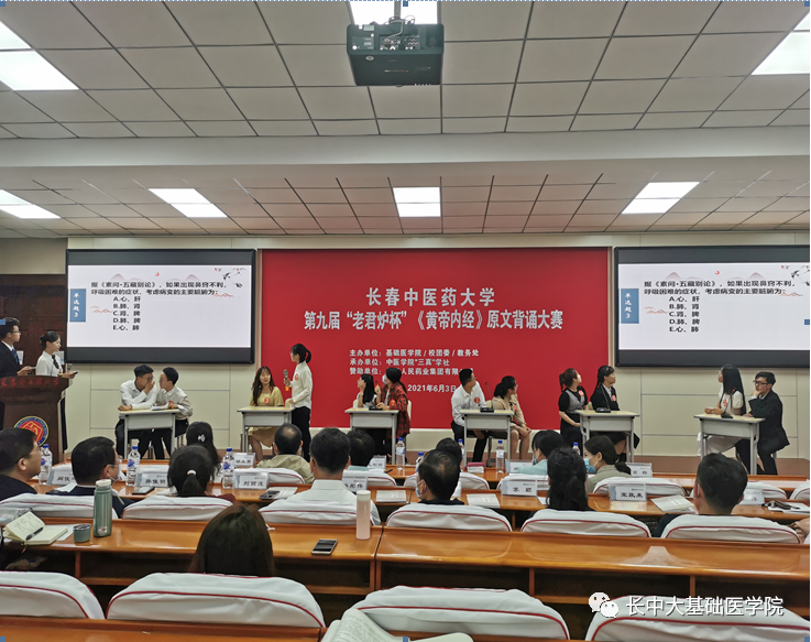 6月3日,PA视讯官方网站第九届“老君炉杯”《黄帝内经》原文背诵大赛决赛经过三个月的积极筹备在致知楼莲心报告厅举行。本次大赛由PA视讯、校团委、教务处、中医公司主办,中医公司“三真”学社承办,长春人民药业集团有限公司赞助了本届大赛。公司党委副书记姜彤伟,全国教学名师、国家一流课程负责人苏颖,校团委书记孙佳明,校团委副书记黄海鹏,PA视讯副经理李萍,中医公司党委副书记兼副经理阚俊明,针灸推拿公司党委副书记李健睿,长春人民药业集团董事长许家顺,集团副总裁宋政来,人力资源总监刘丽波出席了本次大赛。大赛评委及仲裁由内经教研室老师担任。