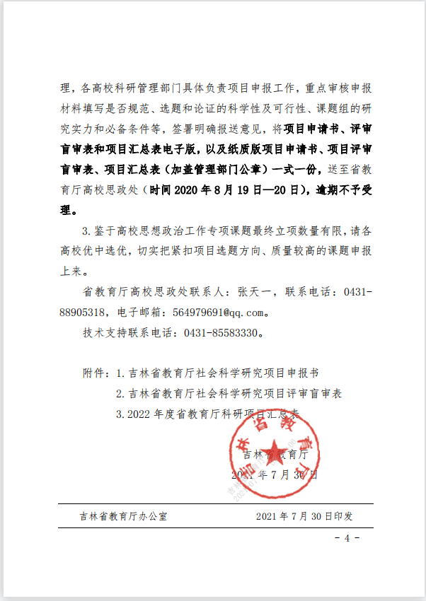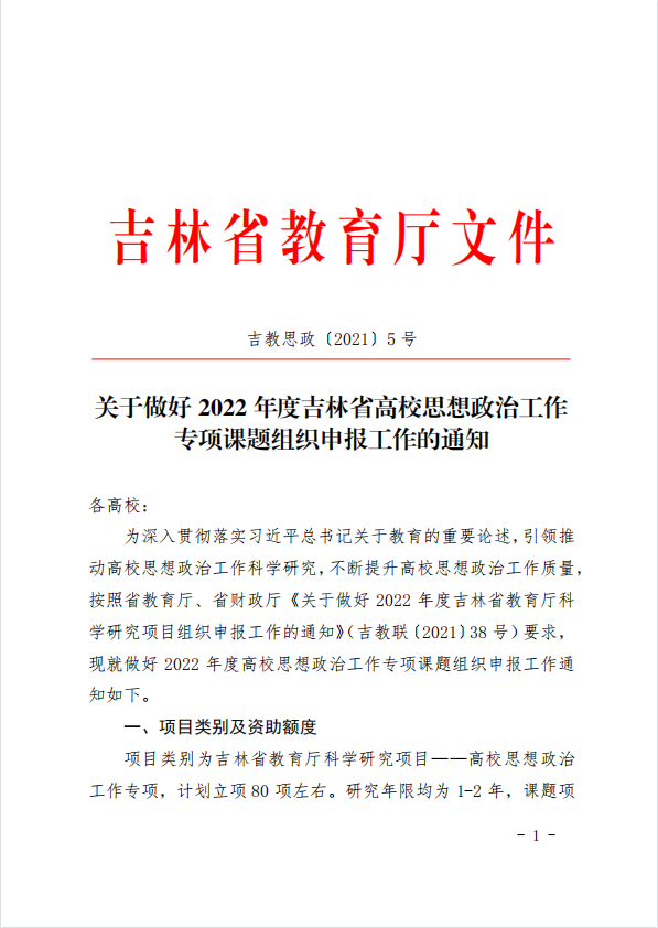 关于做好2022年度吉林省高校思想政治工作专项课题组织申报工作的通知