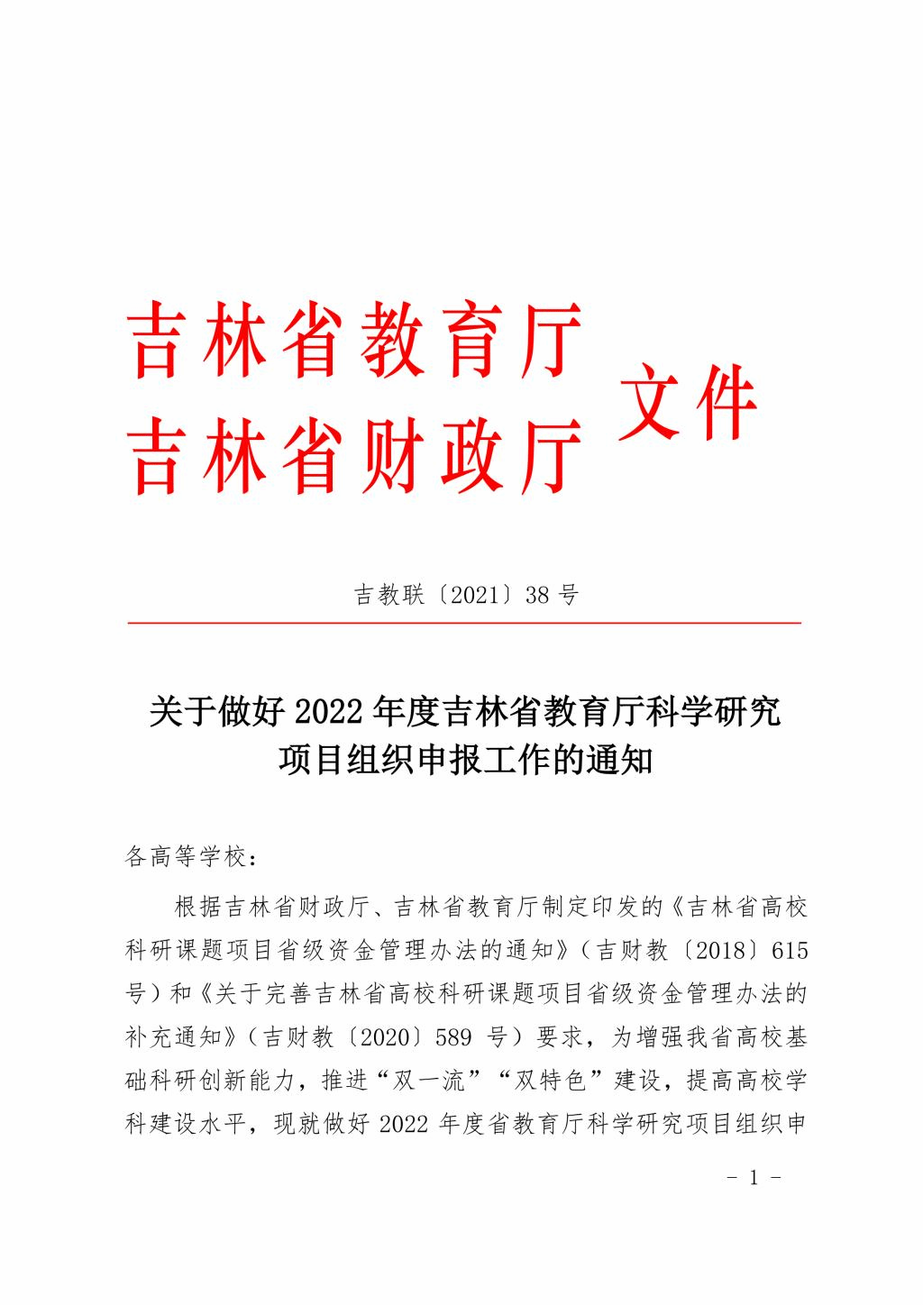 关于做好2022年度吉林省教育厅科学研究项目组织申报工作的通知