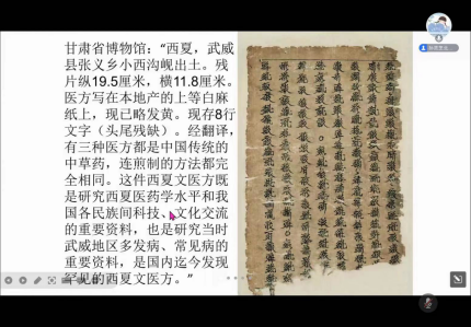 其后孙老师介绍了甘肃省博物院所藏的出土医方,该医方以西夏文字撰写,孙老师对其进行了释读溯源,通多学术史回顾,对比了有关该医方的诸多著作以及研究资料,点明了在资料对比中的问题意识,该医方普遍被认为是治疗“伤寒病”医方,然而孙老师则强调了其中可能存在的“常识思维”、“惯性思维”所存在的影响,并重新进行了释读考证。
