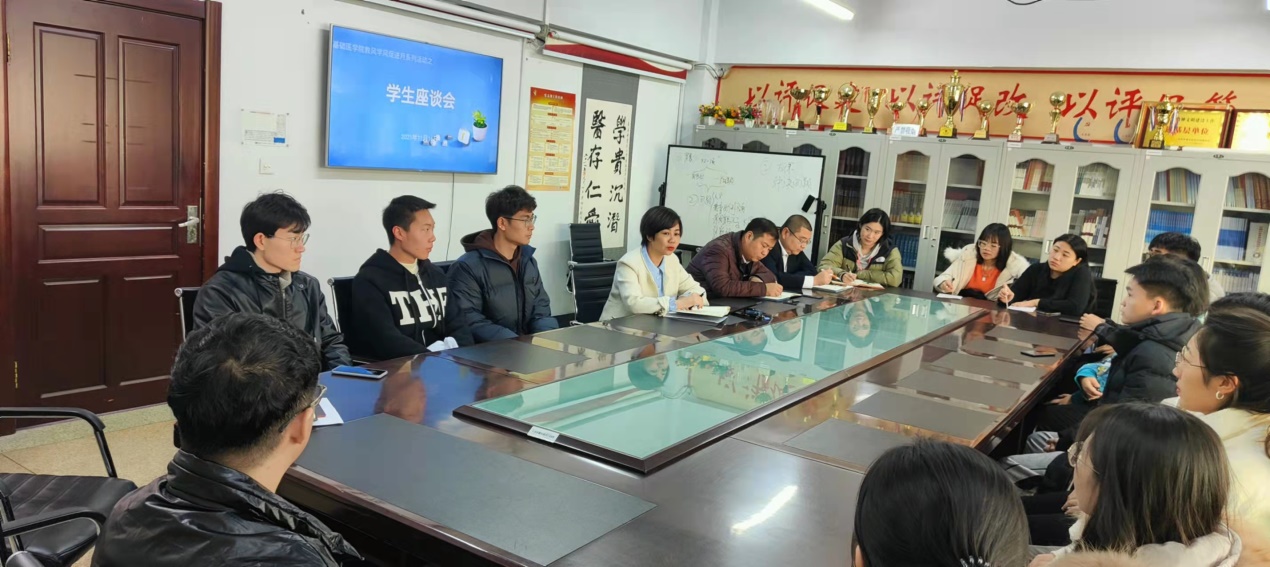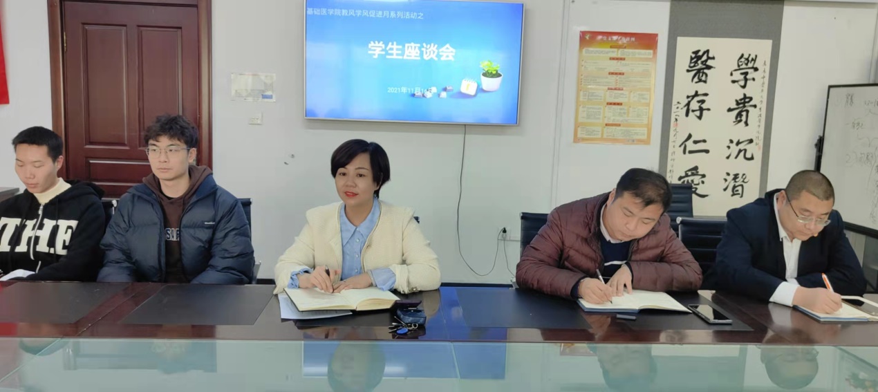 与会人员围绕期中教学检查过程中《中医各家学说》课程的课堂教学秩序问题进行探讨,与会员工就专业年级的心理、学习状况以及上课体会和感想进行发言,并结合实际对教师授课过程中的提出了中肯的想法,座谈会进一步促进教师了解员工学情,使任课教师结合学情进行调整教学设计和内容。